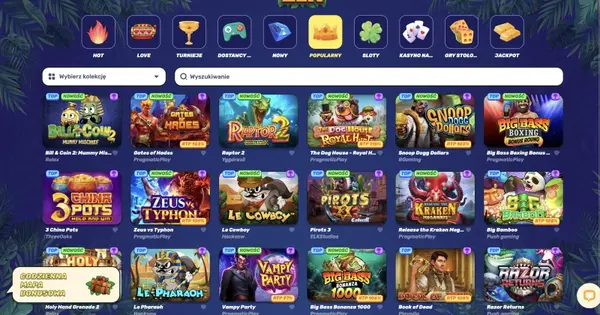 Oferujemy bibliotekę 12000 gier z filtrami, które pomagają znaleźć nowości, klasyczne tytuły oraz propozycje oparte na funkcjach. Kategorie obejmują Sloty, Kasyno na żywo, Gry stołowe, Gry jackpot, Gry crash oraz Wideopoker. Wiele gier pokazuje konkretną wartość RTP w panelu informacji, a często zobaczysz zakresy takie jak 95%–97% w zależności od tytułu i dostawcy. Jeśli chcesz najpierw poćwiczyć, wiele slotów i gier stołowych obsługuje tryb demo, natomiast część gier z krupierem na żywo wymaga gry za prawdziwe pieniądze.